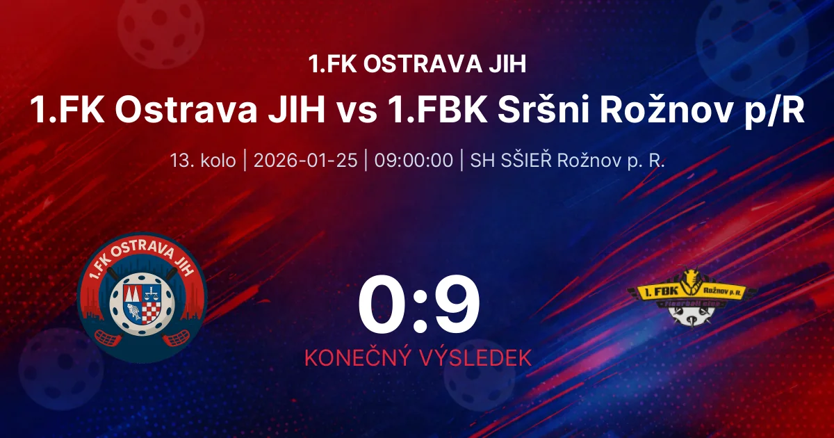 Nedělní ráno 25. ledna 2026 se neslo ve znamení důležitého utkání, kdy na palubovce SH SŠIEŘ Rožnov pod Radhoštěm vyzvala domácí 1.FK Ostrava JIH dorostence svého soupeře, 1.FBK Sršni Rožnov p/R. Tým si přál napravit předchozí výkony, ovšem soubor Sršňů se ukázal jako zdatnější protivník, a od prvních minut zápasu dominoval na hřišti.