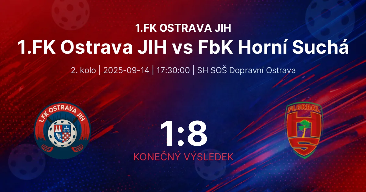 V nedělním utkání, které se konalo 14. září 2025 v SH SOŠ Dopravní Ostrava, se junioři 1. FK Ostrava JIH postavili proti FbK Horní Suchá. Své druhé kolo v soutěži nezačali úspěšně, protože soupeř je přehrál a zápas skončil vysokým skóre 1:8.