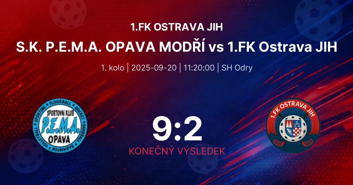 Na sobotu 20. září 2025 byl naplánován zápas mezi S.K. P.E.M.A. OPAVA MODŘÍ a 1.FK Ostrava JIH (starší žáci), který se konal v městské sportovní hale Odry. První kolo nového ročníku přineslo očekávání a napětí jak v řadách domácích, tak hostujících hráčů. I přes intenzivní přípravy a odhodlání však našemu týmu nepodařilo zvládnout nasazený výkon soupeře, což vedlo k porážce 2:9.
